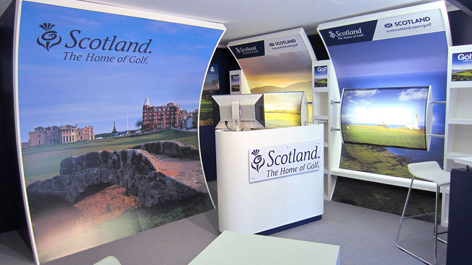 Working both in the UK and overseas within marquee interiors, Open Space Creative delivered a four year event campaign for Visitscotland promoting Scotland as the Home of Golf. Our contract also included stand design and build at the International Golf Travel Market which was hosted in Valencia, Spain, Antalya in Turkey and Algarve in Portugal.