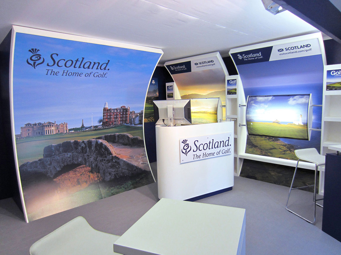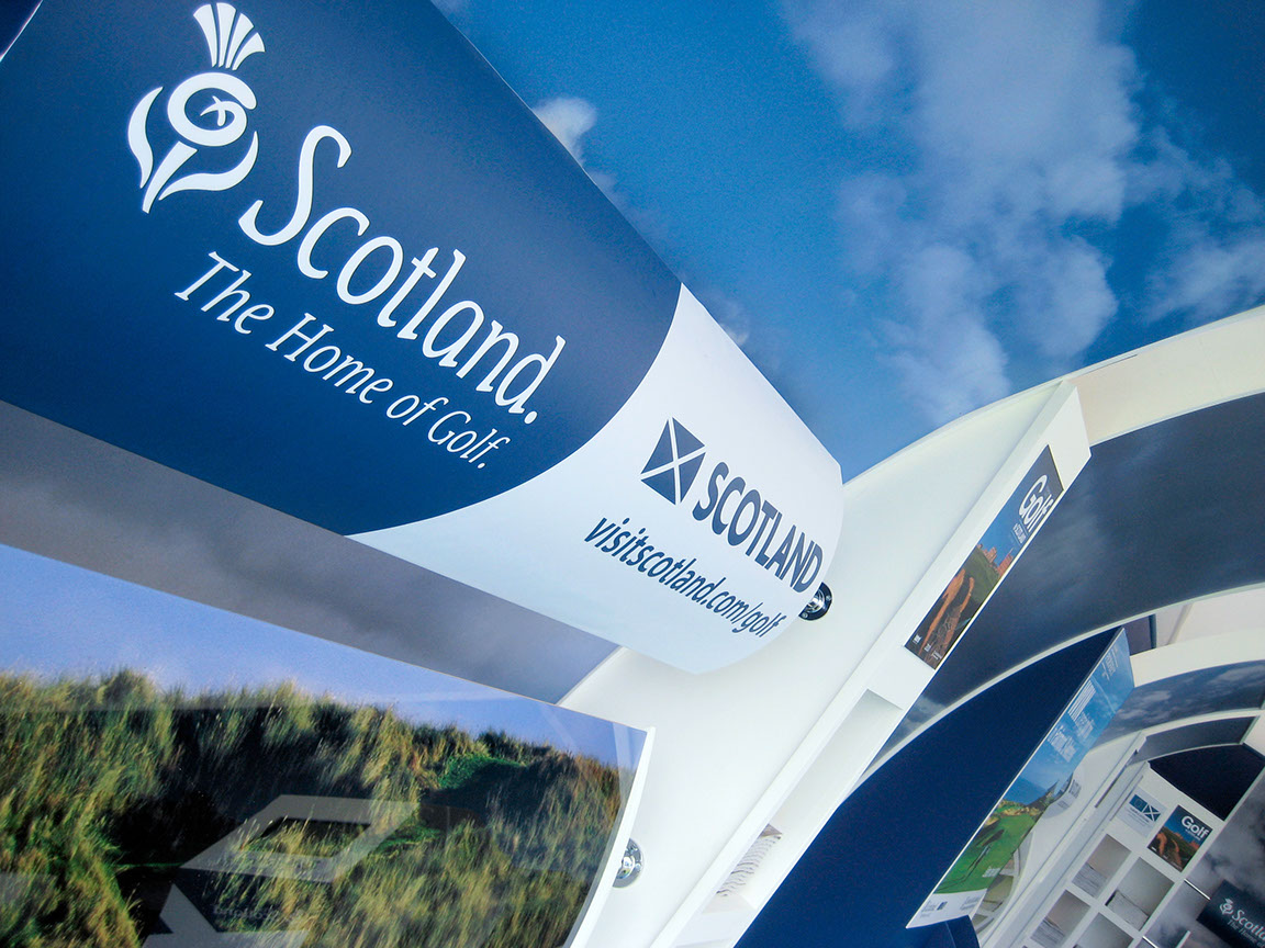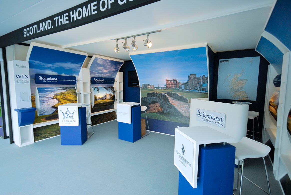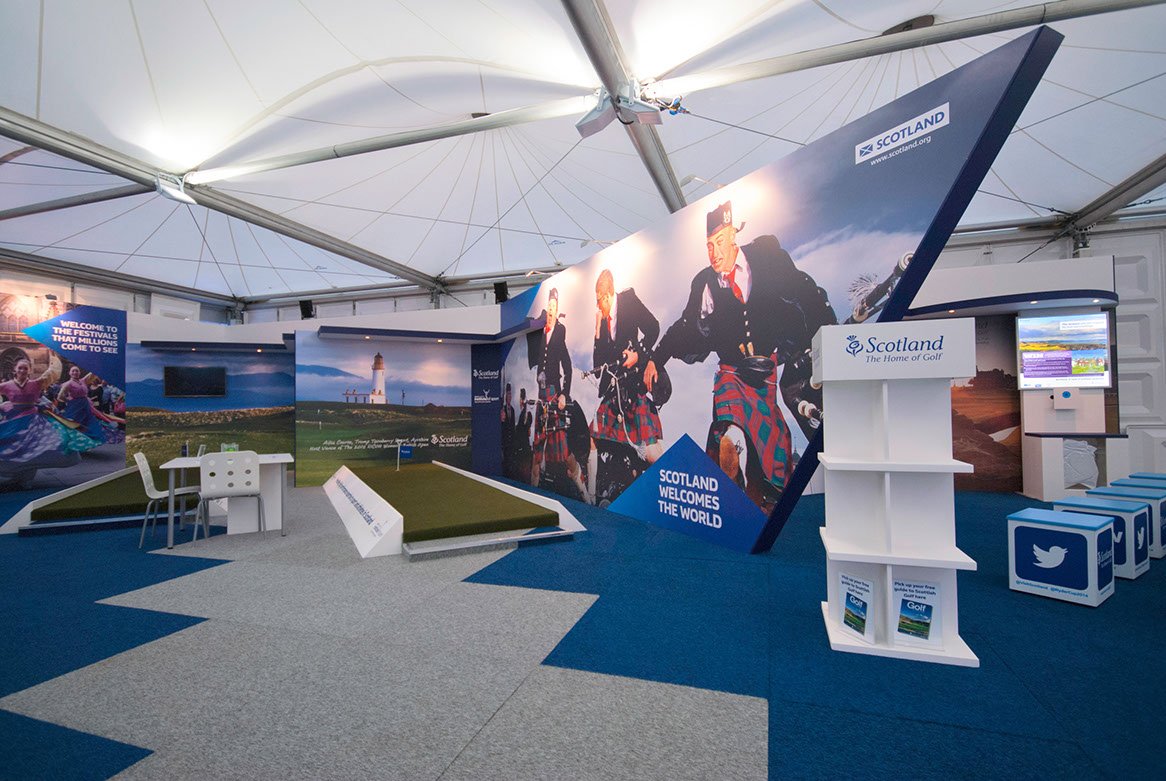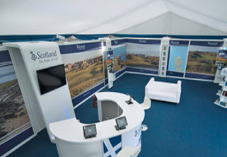 Working both in the UK and overseas within marquee interiors, Open Space Creative delivered a four year event campaign for Visitscotland promoting Scotland as the Home of Golf. Our contract also included stand design and build at the International Golf Travel Market which was hosted in Valencia, Spain, Antalya in Turkey and Algarve in Portugal.