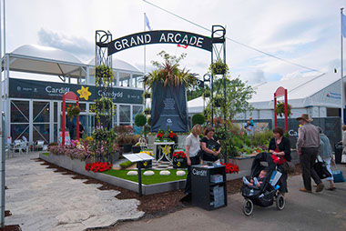 Open Space Creative Ltd was appointed by Cardiff County Council to design and deliver similar trade stands at The Royal Welsh and the National Eisteddfod in Cardiff. The stands incorporated a 100 square metre silver award winning garden from the Chelsea Flower Show that year and also included a double decker marquee structure that had a hospitality balcony that overlooked the show garden.