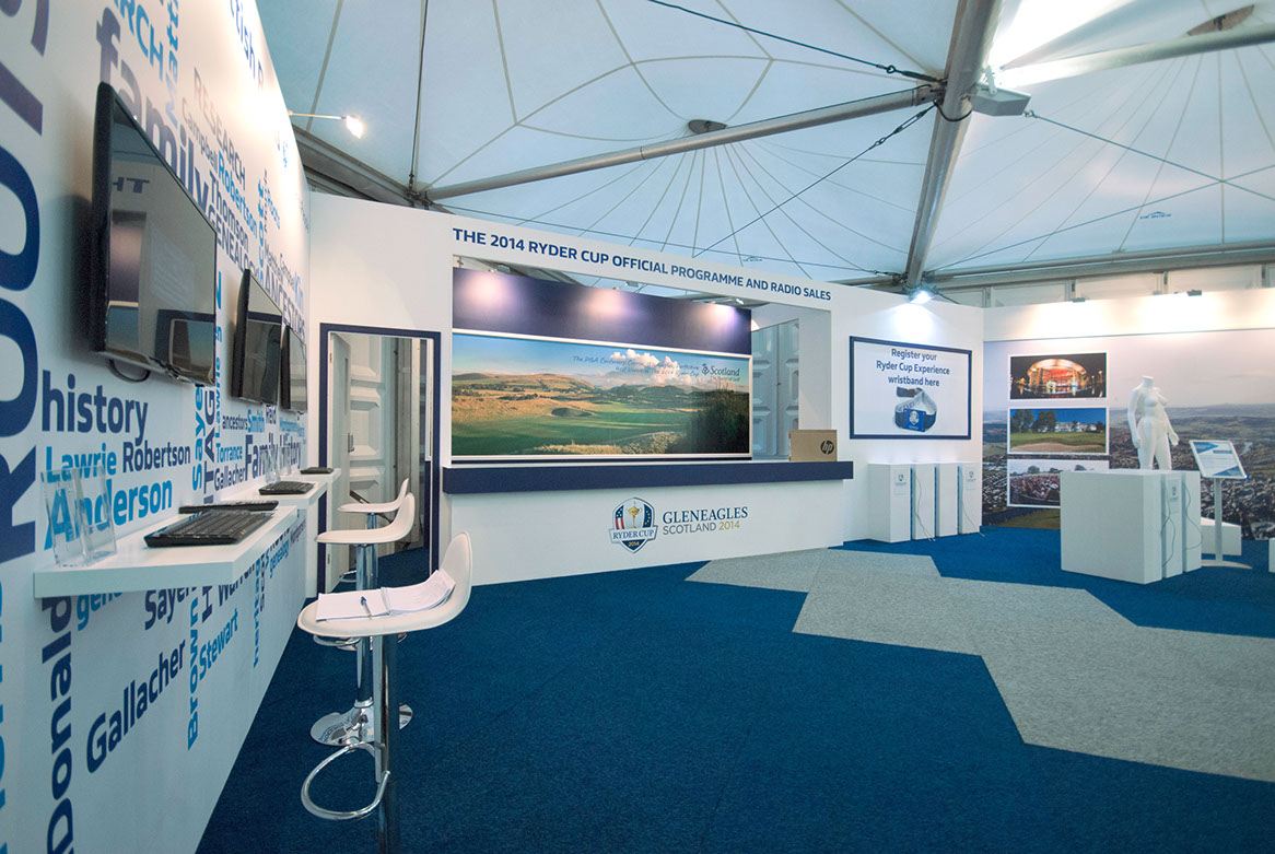 The campaign concluded with the design and build of the Visit Scotland pavilion at the prestigious Ryder Cup event at Gleneagles which included the interior and exterior design of an eight hundred square metre marquee.