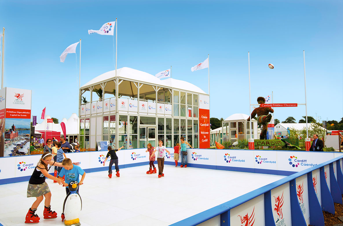 At the National Eisteddfod the trade stand also incorporated a synthetic ice rink, which was open to the public to use. Within the trade area two rally cars were put on display to showcase the fact that Cardiff was the start of the Welsh Rally and within the lower floor of the double decker structure a Cardiff visitor’s information centre was created. The Royal Welsh stand received the coveted “Best Commercial Trade Stand” at the show.