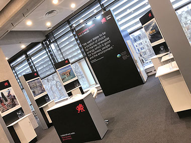 Our client demanded an eco friendly solution and Open Space Creative were able to utilise a new exhibition system which fulfilled all the requirements of a sustainable design approach. With re-use in mind, the stand and graphics were used over three events, maximising their budget. The design solution incorporated an internal framework to which we applied large format printed graphics. To give the booth a custom feel our designers combined a bespoke items such as the partner pod units.